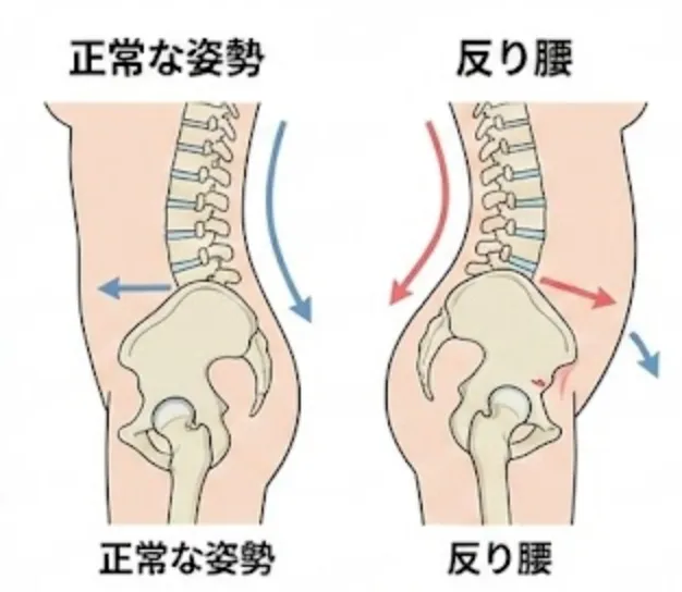 見た目の問題だけではありません。反り腰は、骨格構造上もっとも負担がかかる姿勢の一つであり、放置することで様々な体の不調を引き起こします。